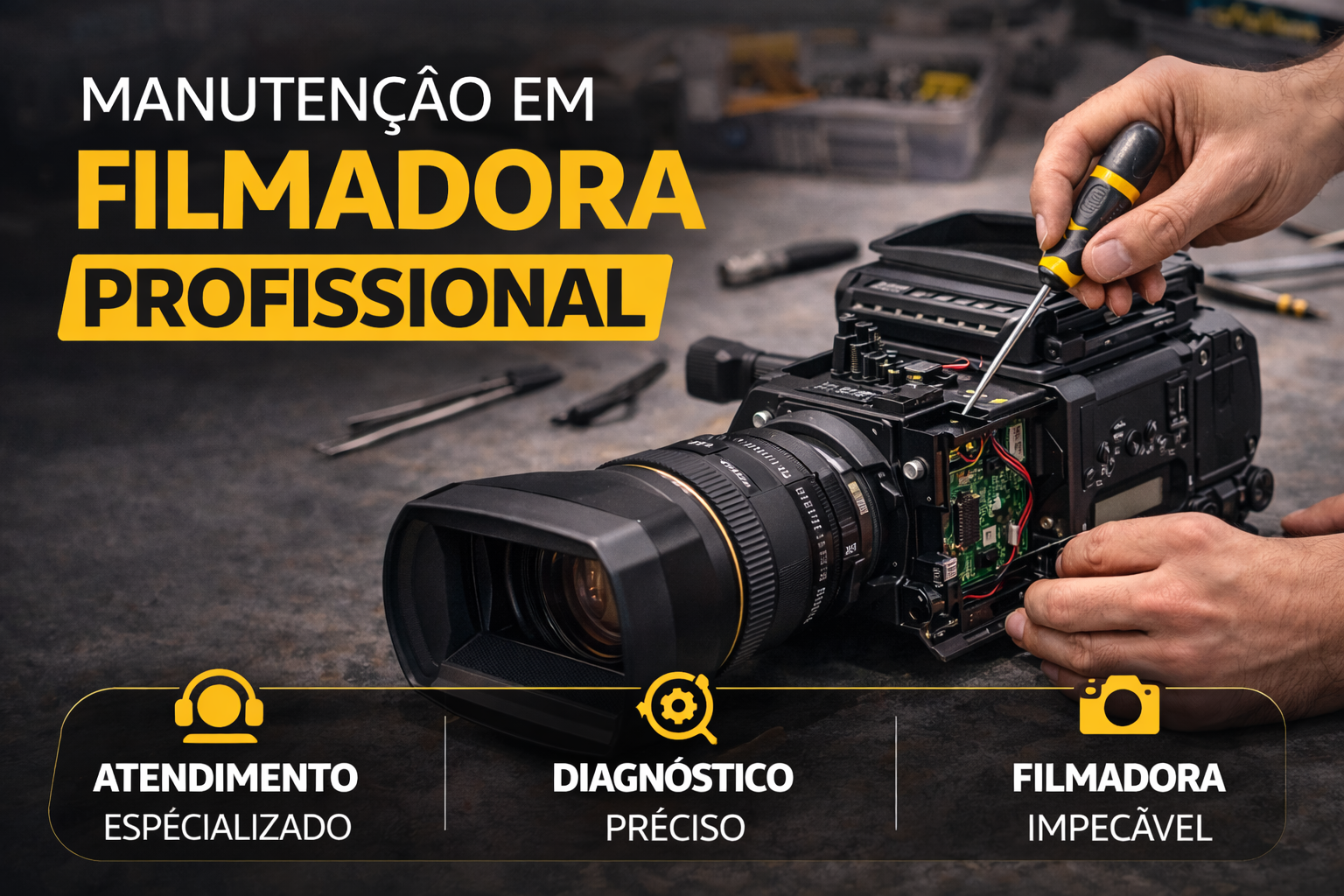 Realizamos manutenção em filmadoras utilizadas para gravação profissional e doméstica, incluindo modelos conhecidos das marcas Sony, Canon e Panasonic, com verificação completa do sistema de imagem e gravação.